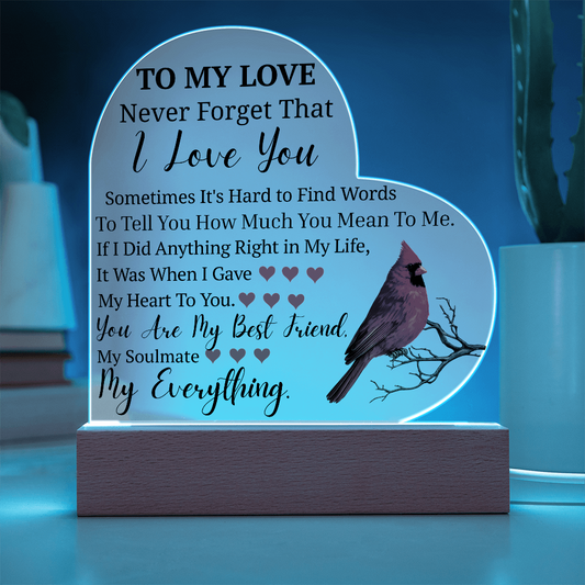To My Love Cardinal Heart Acrylic Lamp