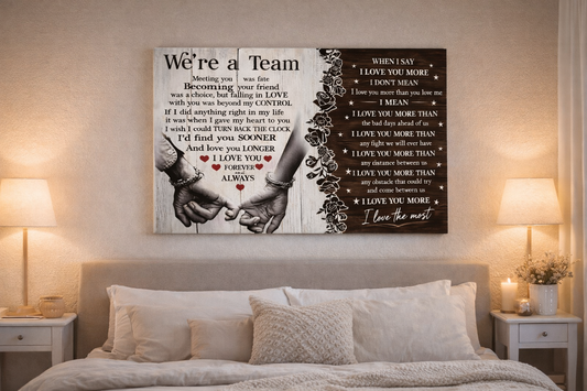 “We're a Team” Romantic Canvas Wall Art – I Love You More Than Anything Quote, Couple Gift for Husband or Wife, Anniversary & Wedding Decor