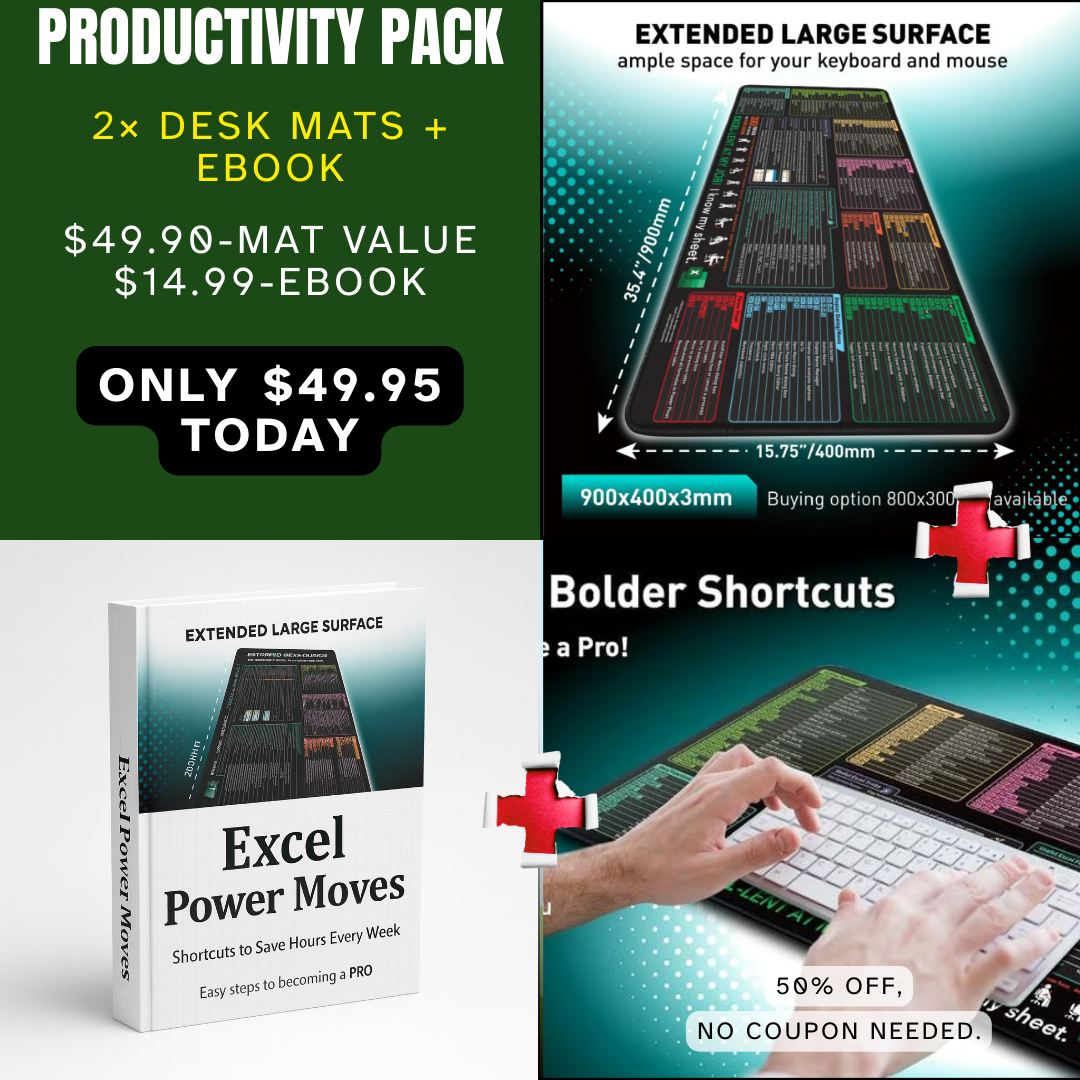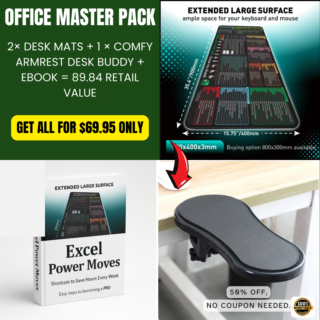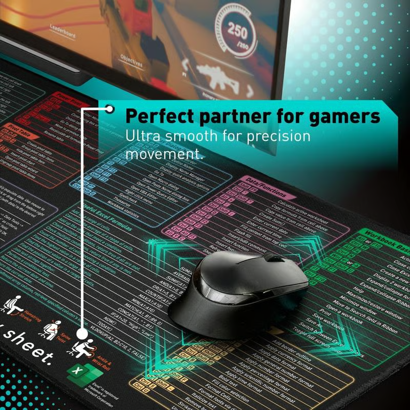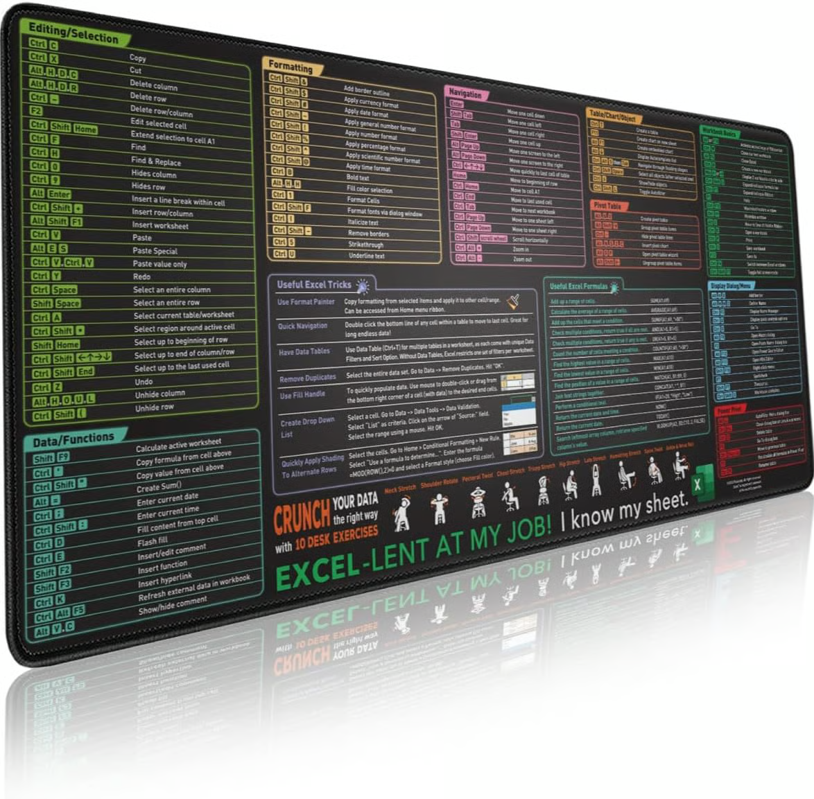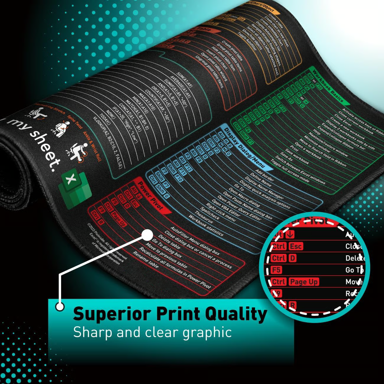 Master workbooks, formulas, and charts faster, boost productivity, and reduce wrist fatigue—all while keeping every essential shortcut right at your fingertips.