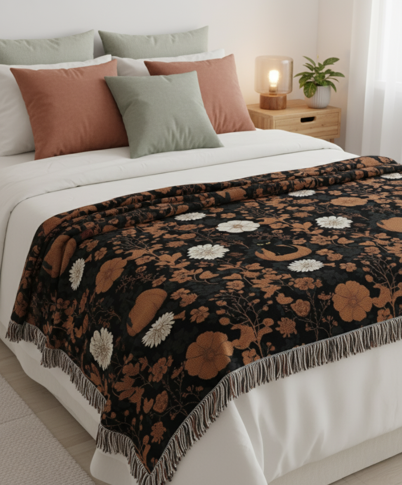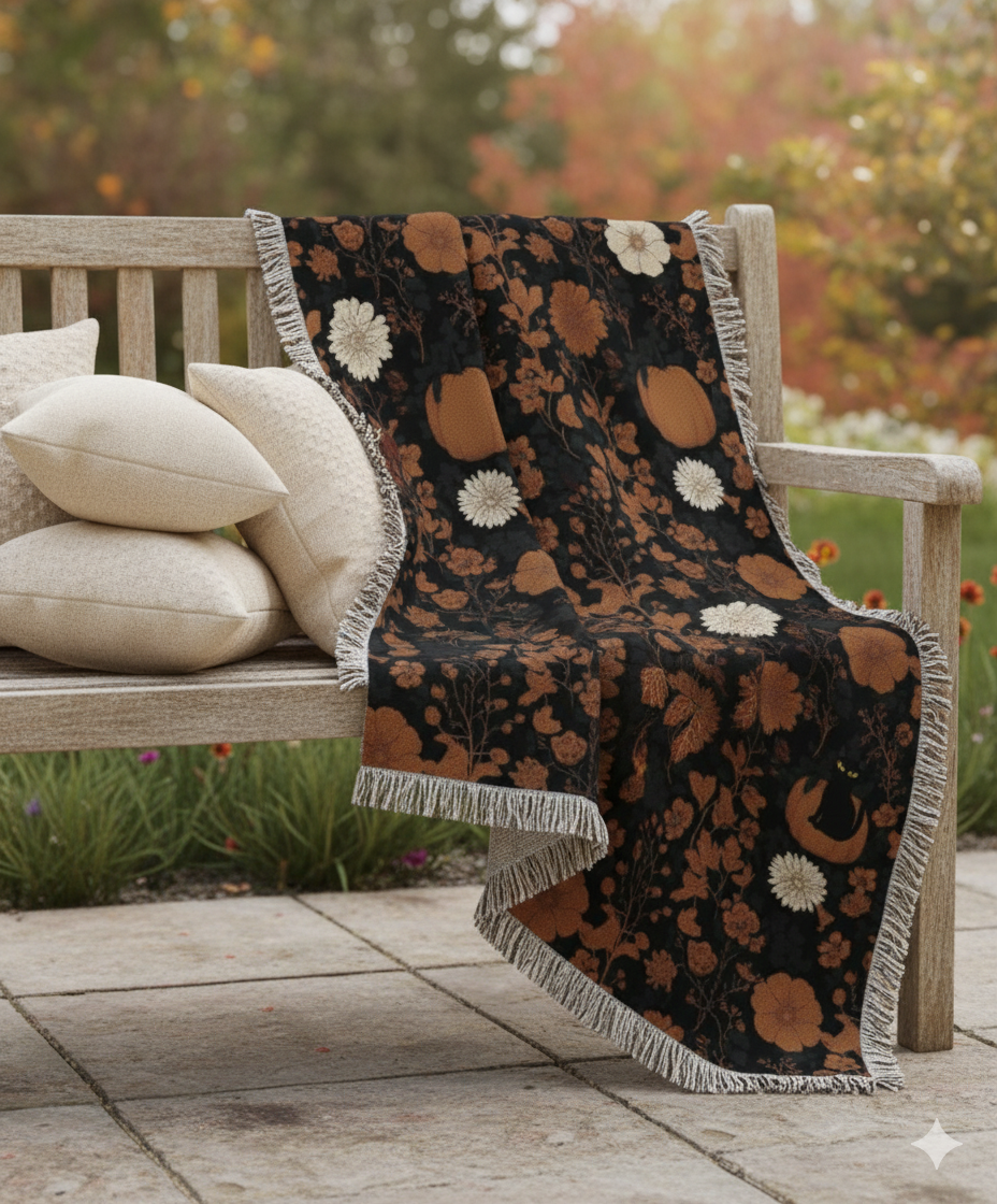 Cozy Floral Woven Blanket | Warm Throw for Home Decor, Gift for Her, Bohemian Style, Picnic Blanket, Cozy Home Essentials