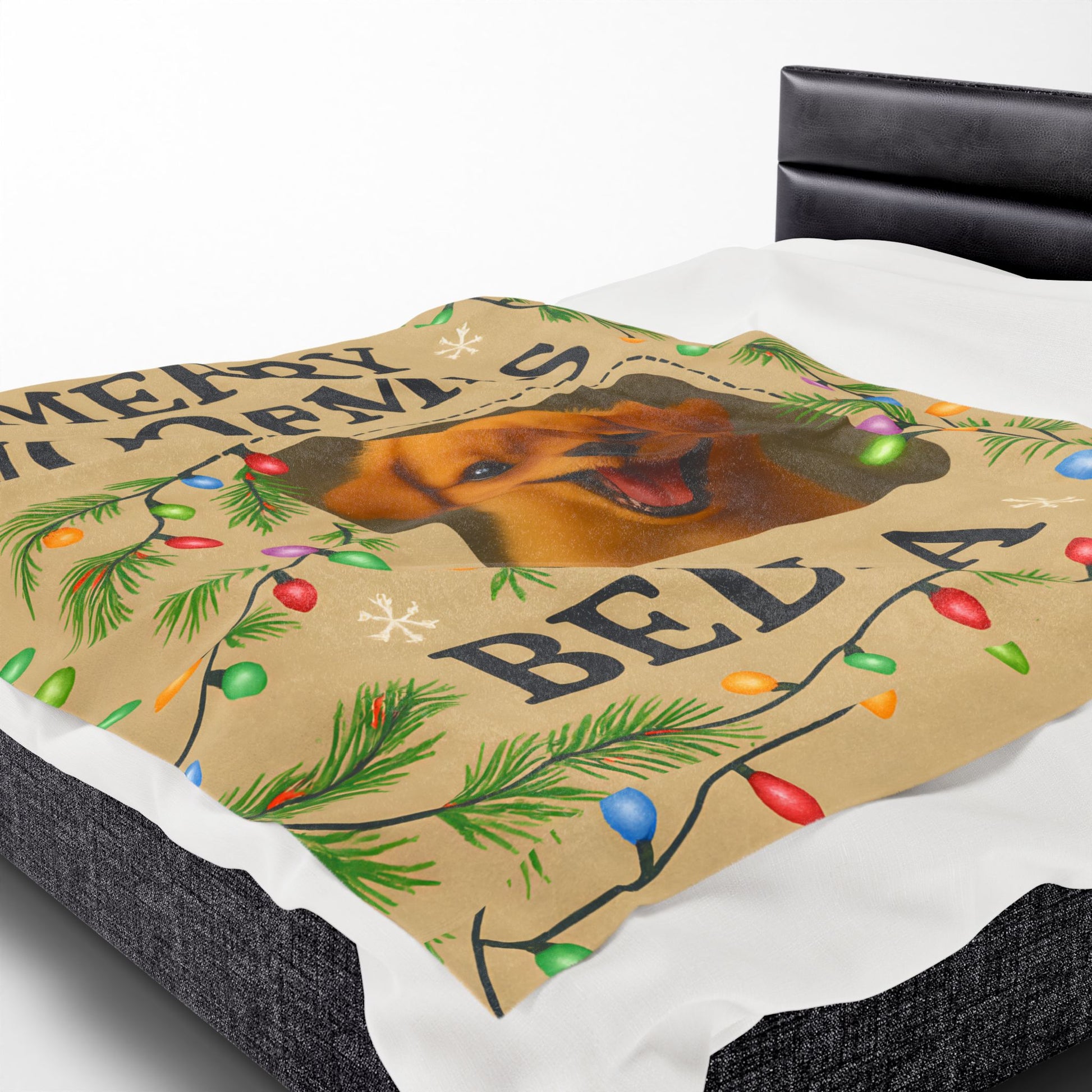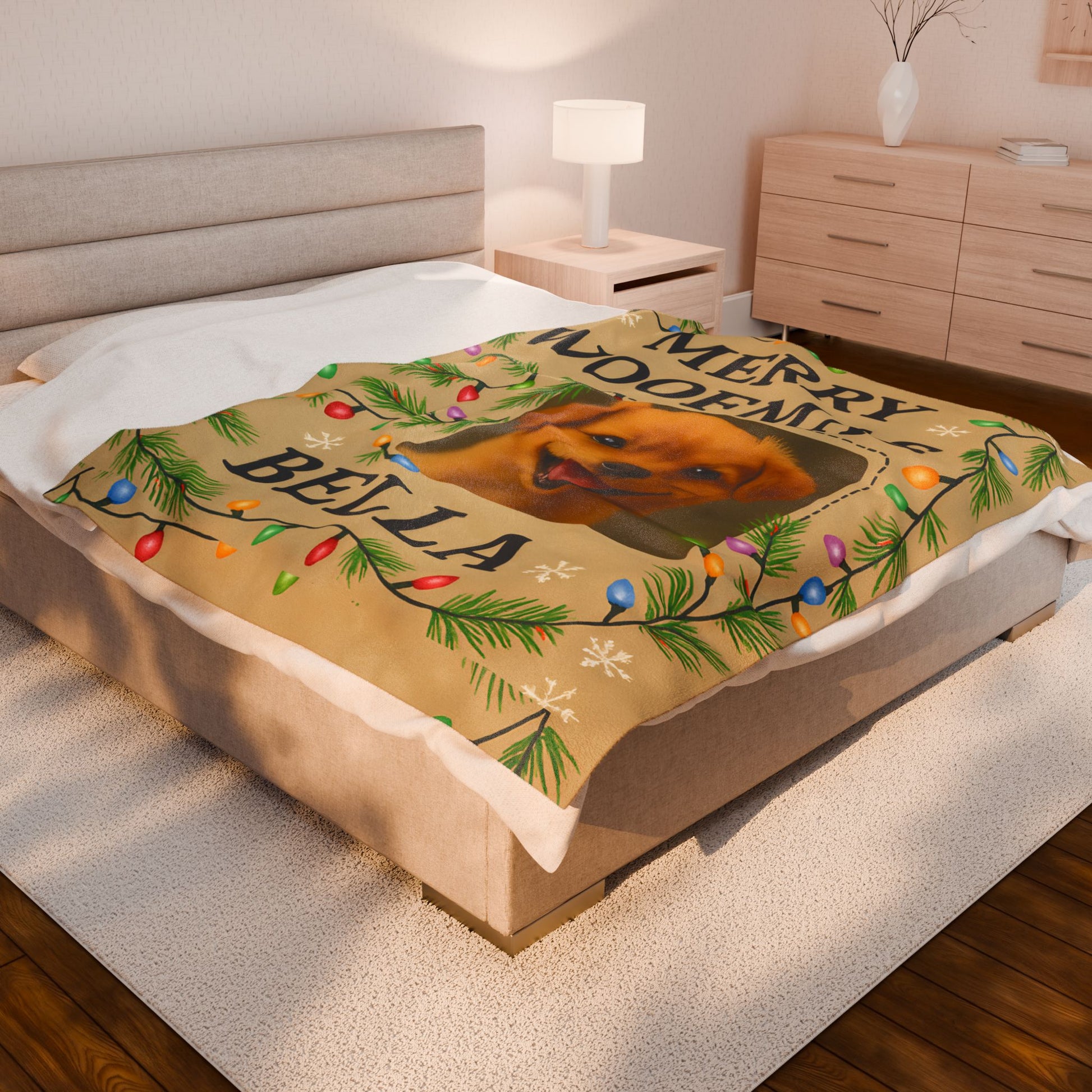 Custom Merry Woofmas Plush Blanket for Dog Lovers, Pet Gift, Cozy Throw, Holiday Decor, Personalized Blanket