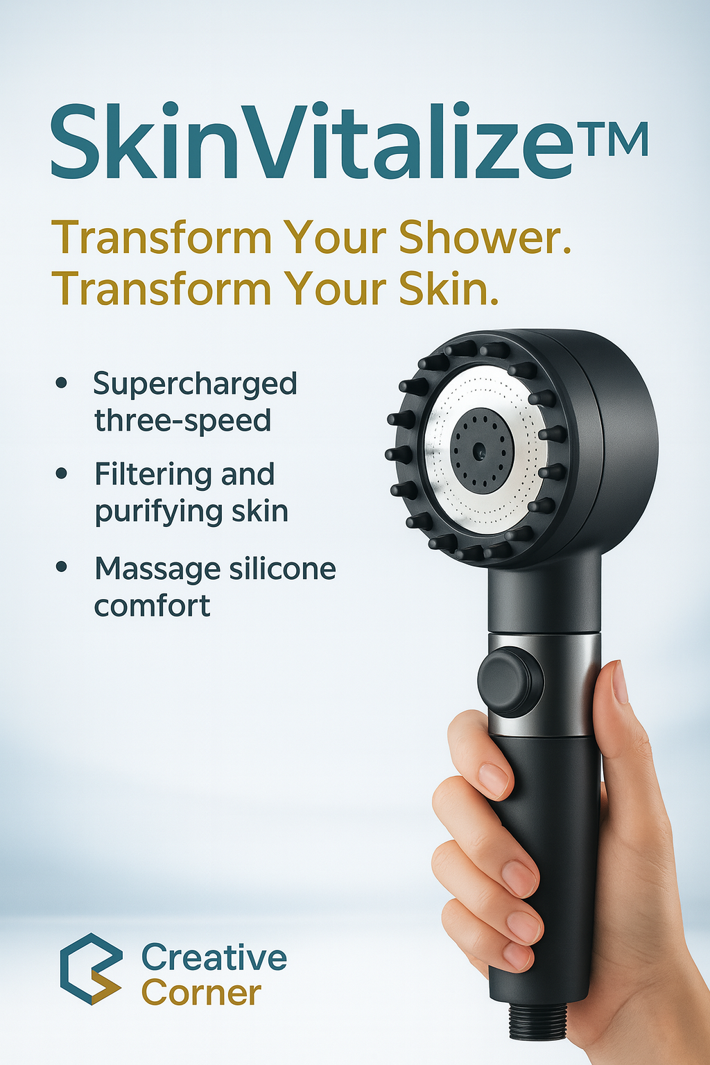 Chlorine, hard minerals, and other impurities lurking in tap water strip natural oils, dry out skin, and dull your hair. The SkinVitalize™ Ionic Filter Shower is designed to change that by delivering purified, ionic-filtered water straight to your skin and hair.