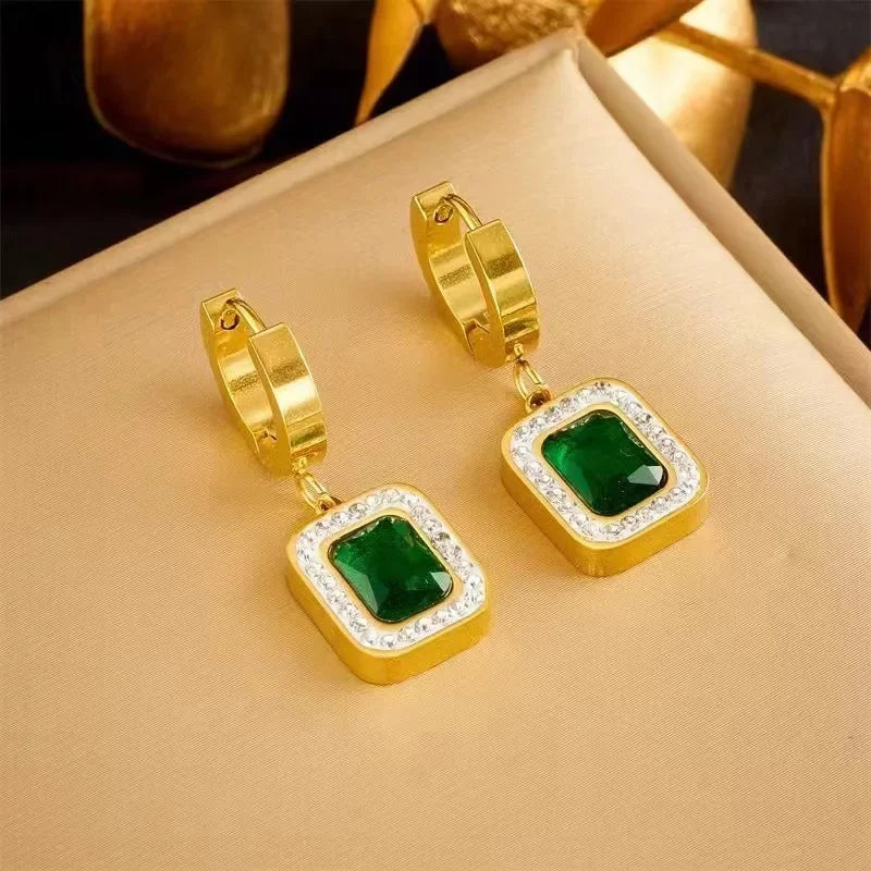Everyday life exposes jewelry to sweat, showers, and commuting. This golden set holds color and shape so you look sharp after a long day. The emerald zircon catch draws attention without screaming for it. Wear it to work, a date, or a night out and stay confident knowing the set wonβt dull or flake.