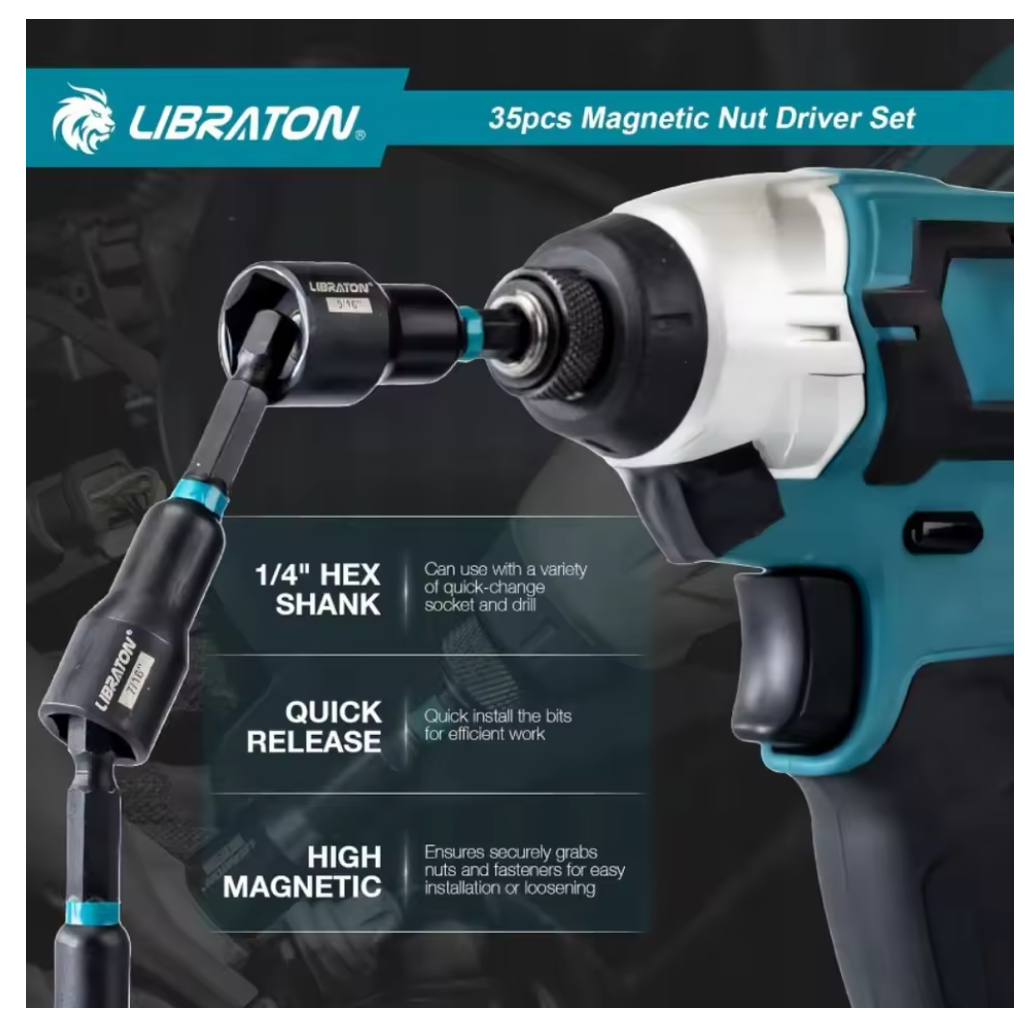 Magnetic driver heads grab nuts instantly. No more dropped fasteners, less frustration, and faster repair times on cars, grills, or home gear.