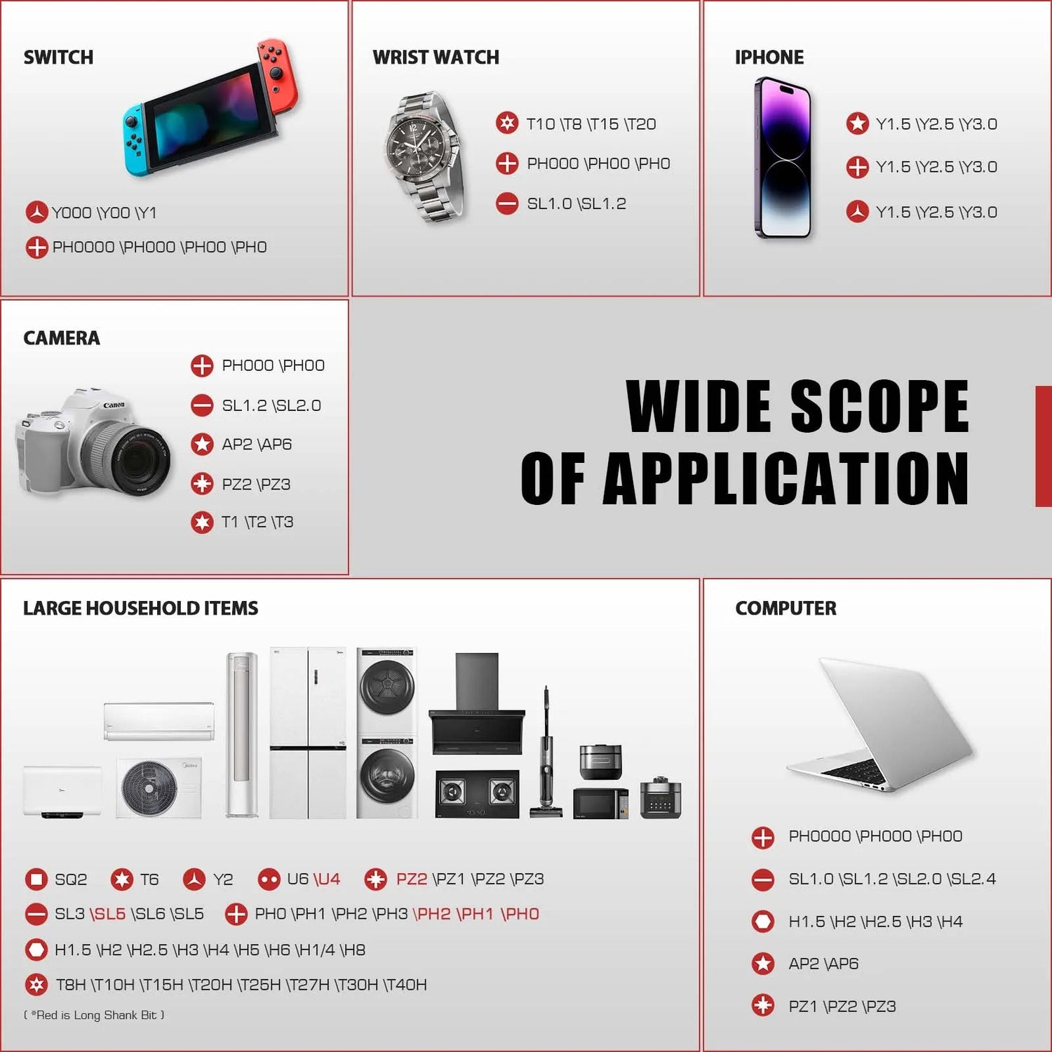 From delicate electronics to robust furniture, this set adapts to all. The detachable T-handle easily reaches cramped spaces, offering flexibility and making repairs easy. Imagine completing every home task with just one tool, saving you time and effort.