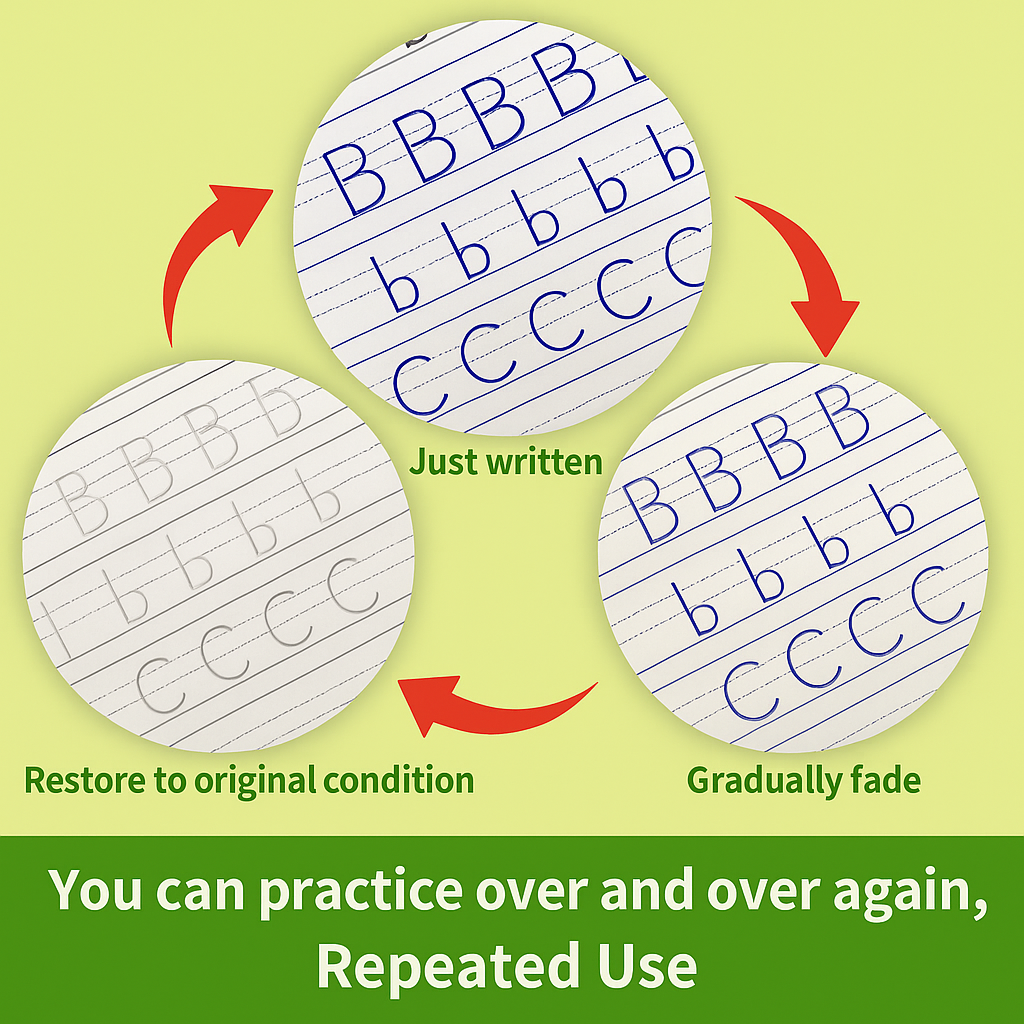 Turn practice into play with our innovative workbook! Watch your child eagerly trace letters as magic ink fades away, making each session feel like a fun game. Say goodbye to dreaded handwriting lessons and hello to joyful learning.