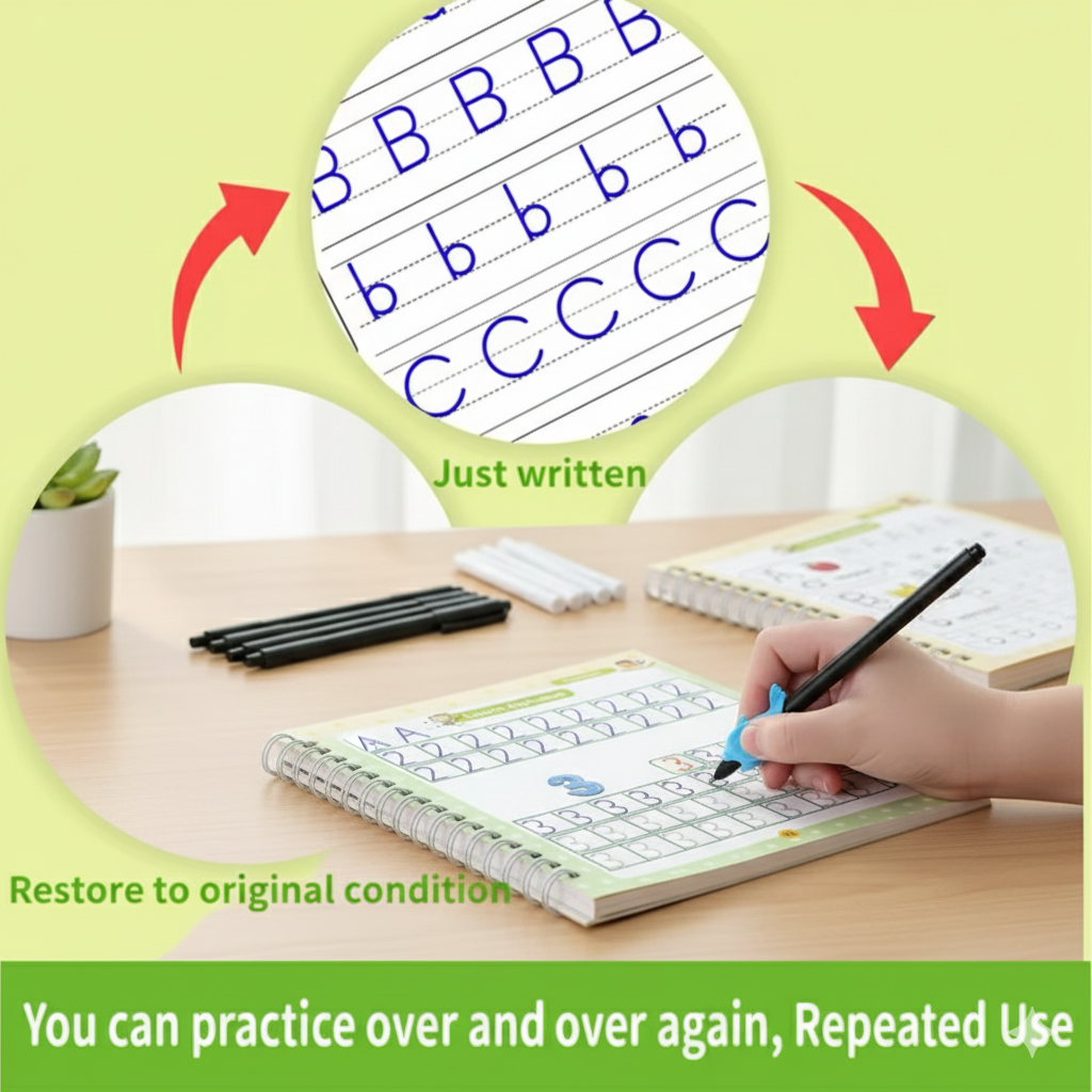 Our kit combines fun, magic disappearing ink, and educational design to make handwriting practice enjoyable and effective. Unlike others, it offers reusable pages and a unique grip that transforms learning.