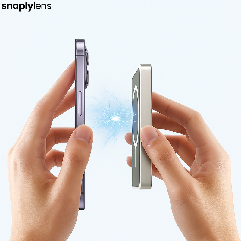 Snapspro attaches magnetically to your phone, with no apps or cables needed, turning your device into a professional camera setup in seconds.