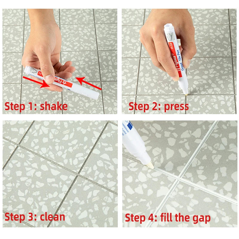 Turn stained, moldy grout white again in minutes. Waterbased, waterproof ink covers dark spots and stops visible mold, making showers and floors look brand new without full regrouting.
