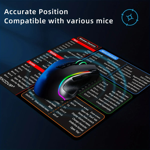 The mouse pad includes popular shortcuts for Word, Excel, and PPT, streamlining your workflow and saving time on everyday tasks.